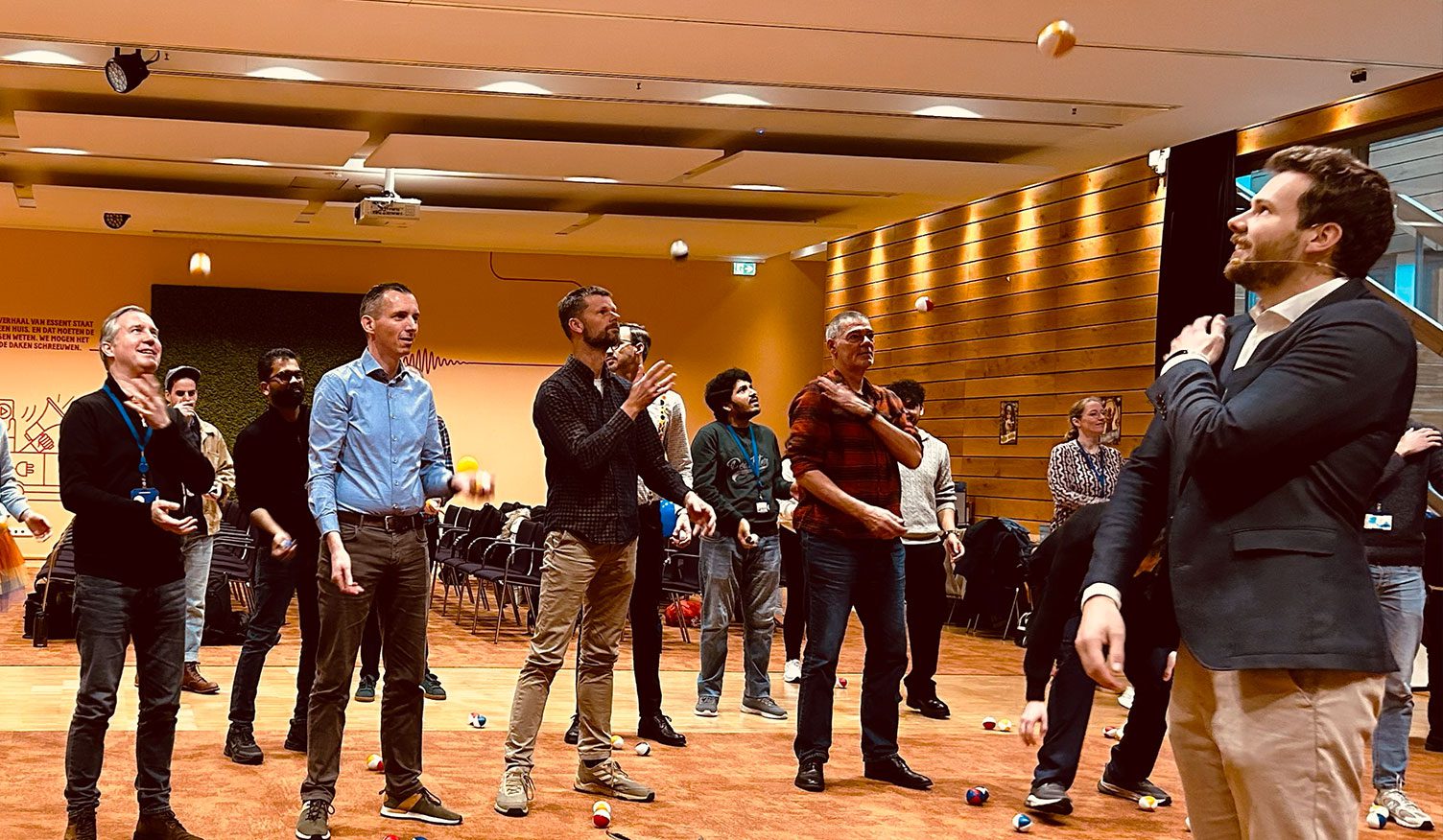 Het resultaat: deelnemers ervaren de theorie aan den lijve. Ze leren jongleren, maken fouten, reflecteren op patronen en ontdekken hoe dit alles direct raakt aan hoe hun team werkt, samenwerkt en groeit.