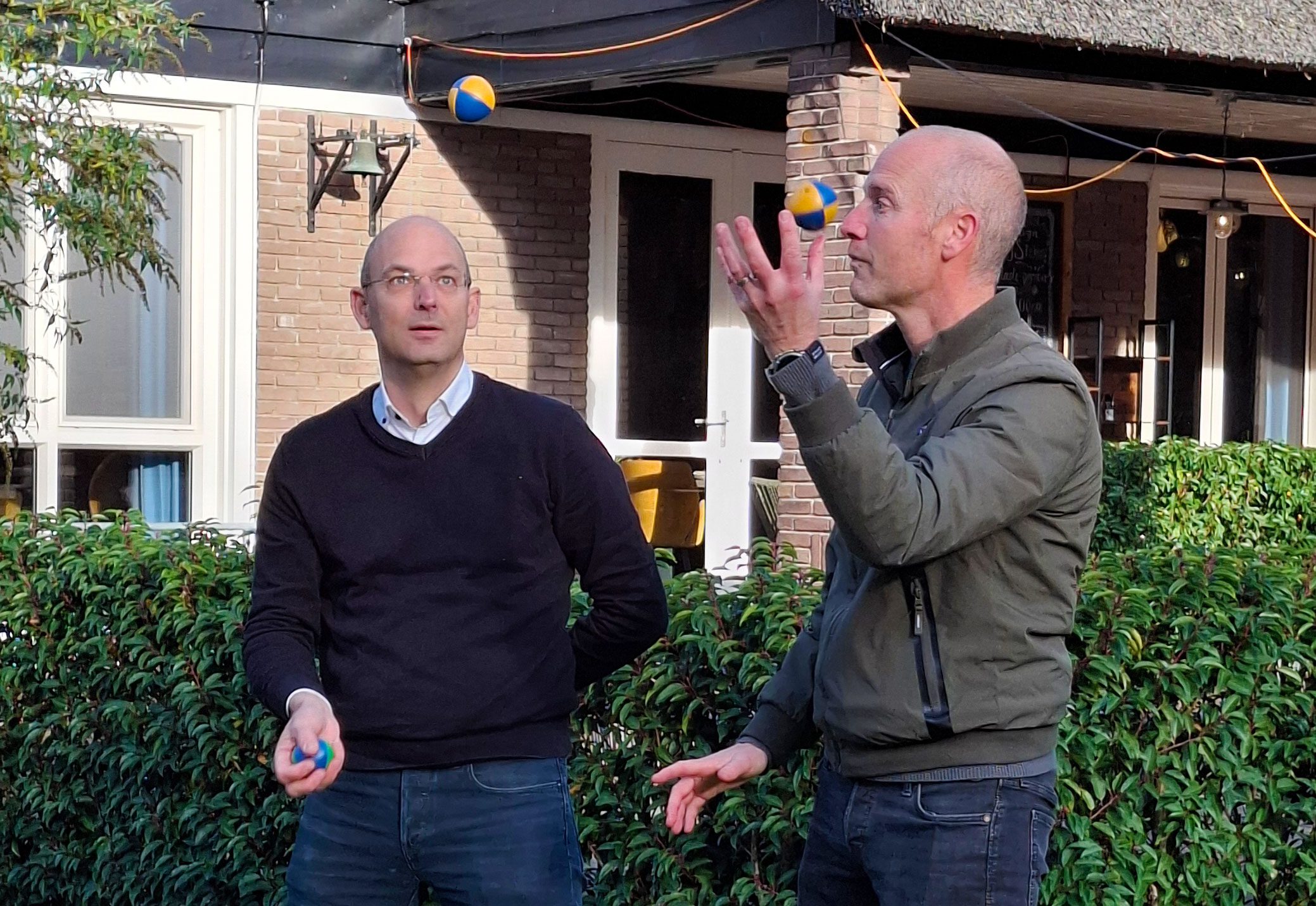 De workshop jongleren van Simon à Campo is energiek, laagdrempelig en boordevol zakelijke inzichten. In 45 tot 60 minuten leren jouw collega’s jongleren met 3 ballen — en ontdekken ze tegelijk hoe samenwerken, loslaten en focus werken in de praktijk van alledag.